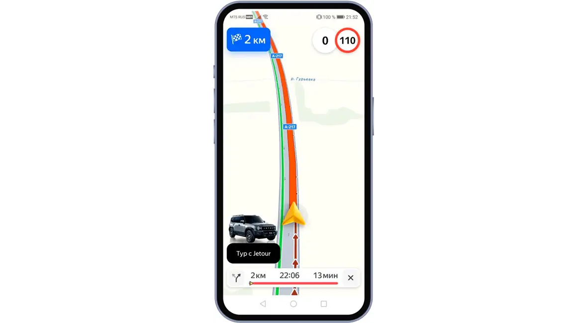 На главном экране Яндекс Навигатора можно увидеть кнопку для перехода на сайт проекта «Тур с Jetour». Здесь опубликованы полезные советы по путешествиям в различных регионах страны. Также пользователи сервиса могут установить в качестве курсора изображение новейшего внедорожника Jetour T2. Помимо этого на веб-версии Яндекс Карт есть промо-кнопка, а в пробке пользователи могут увидеть брендированный баннер Jetour.